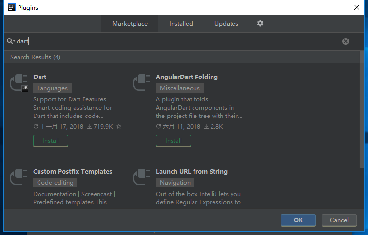 idea安装好了以后,我们还需要安装对应的dart插件。