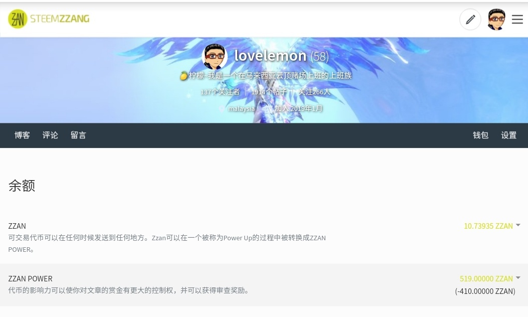 然后我们再看看图②...这个页面是不是很熟悉?没错,他长得很像 steemit,只是 token 已从 steem 变成 zzan,steem power 变成 zzan power。