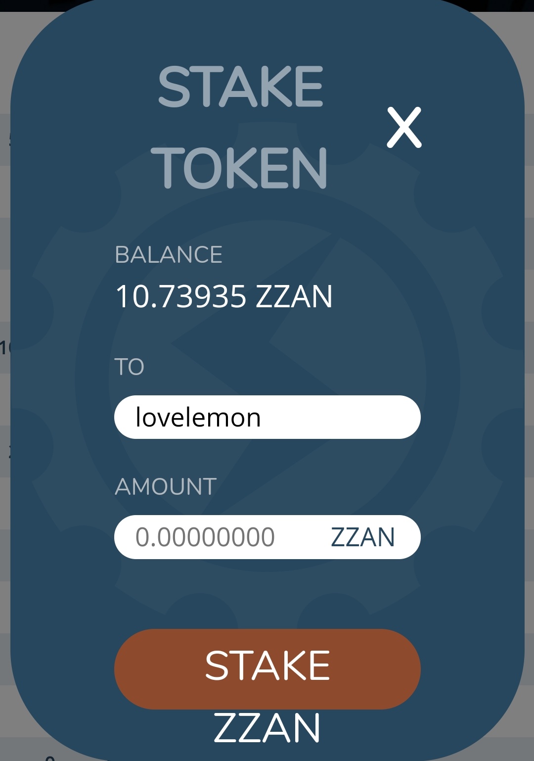 锁仓 (STAKE TOKEN) 就是把 zzan 代币 power up 成 zzan power,情况类似于使用 steem 来 power up 成 steem power (点赞权重) 。