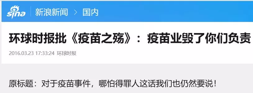 讽刺的是,环球时报曾批过《疫苗之殇》,认为山东非法疫苗案,其问题出在流通领域,许多媒体将其与疫苗不良反应混为一谈,容易扭曲公众对于疫苗的认识。但是这次的千里之堤,正式溃于疫苗企业自身的蚁穴,因为有问题的疫苗,其不良反应的概率,有可能会大幅提升,从而变身成为有毒疫苗。