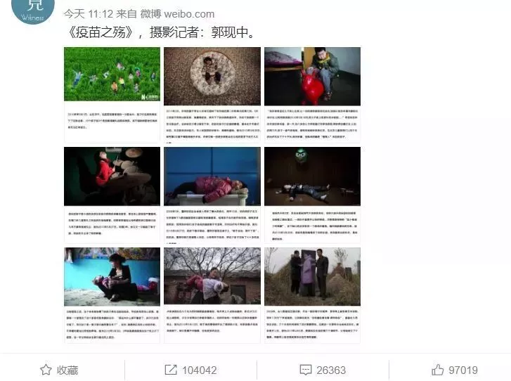 在2016年山东非法疫苗案引爆公众关注的时候,财新“不适时宜”地在公众号推送了一篇2013年的旧闻——《疫苗之殇》,讲述的是摄影师郭现中历时三年,采访记录的一部分“疑似疫苗不良反应及有毒疫苗”受害者案例,引起了公众的强烈关注和充分讨论。