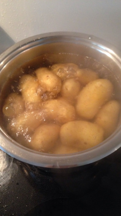 - 土豆带皮煮一下,包锡纸也入烤箱,二十分钟左右