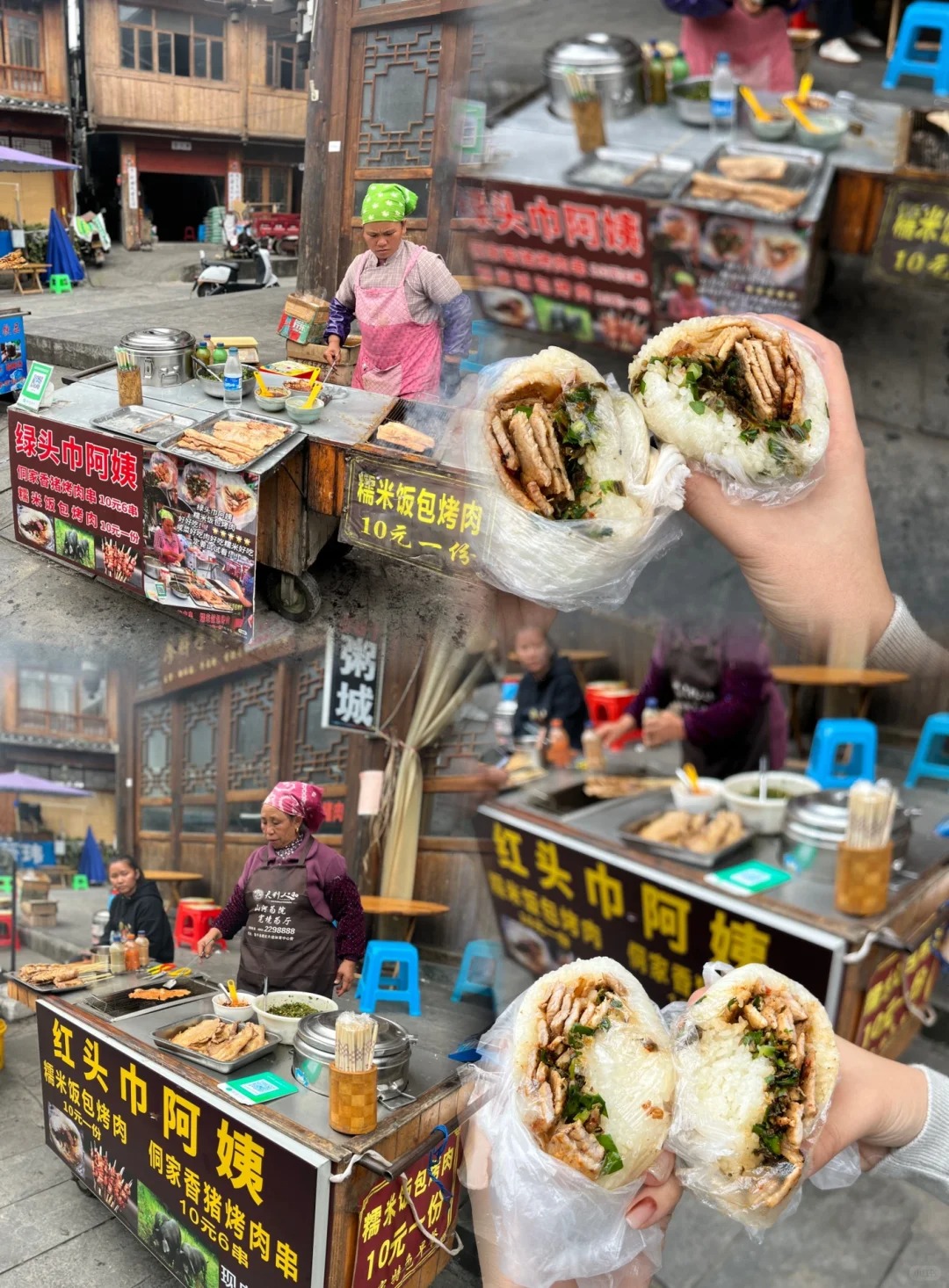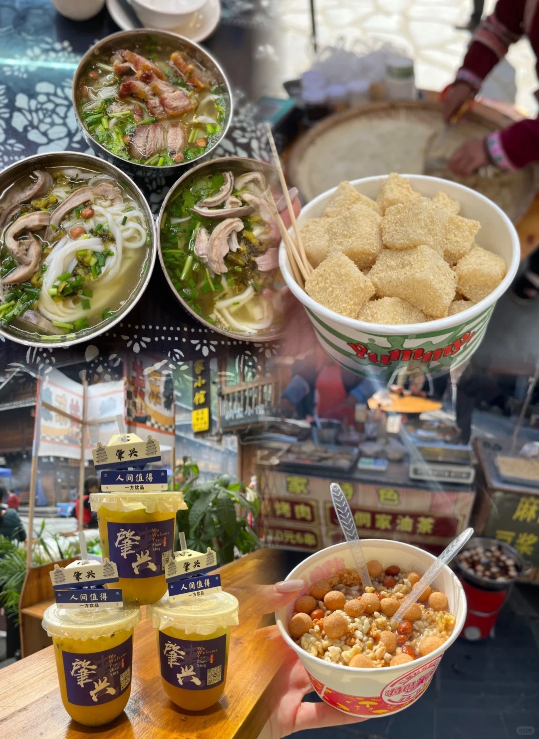 吃油茶,糯米饭(个人觉得绿头巾阿姨的比较好吃),手工粉,米酒,本地烤肉腊肉、酸汤鱼……