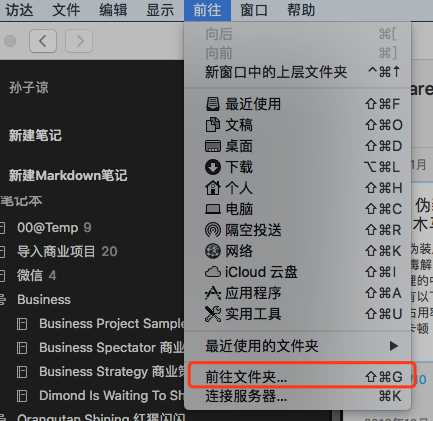 - 在访达中,选择前往文件夹。