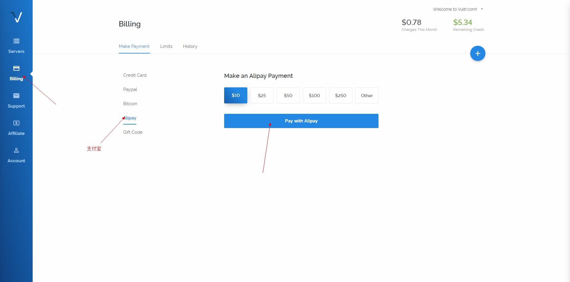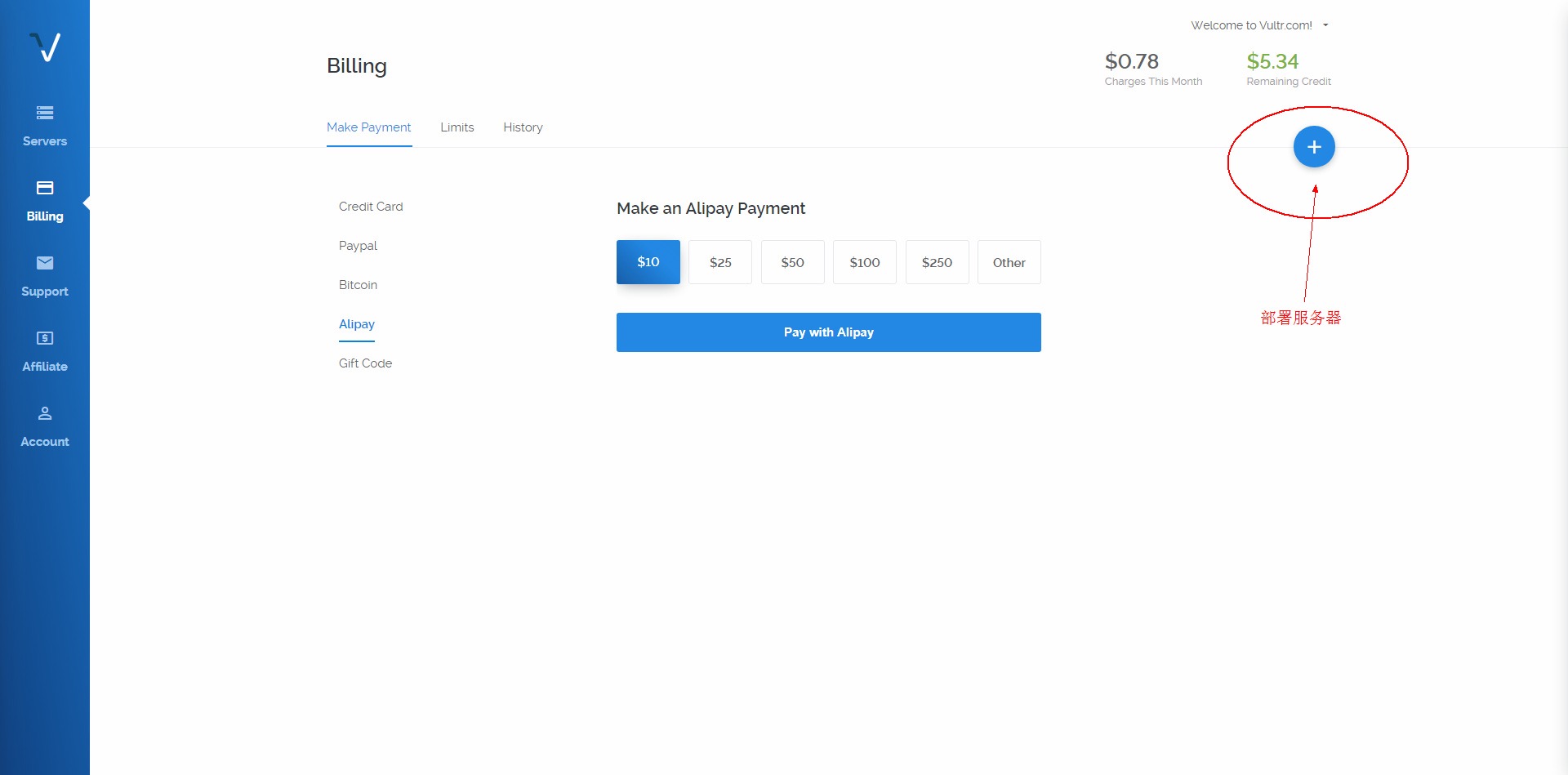 推荐在Vultr购买VPS,好处就是支持支付宝,方便!
