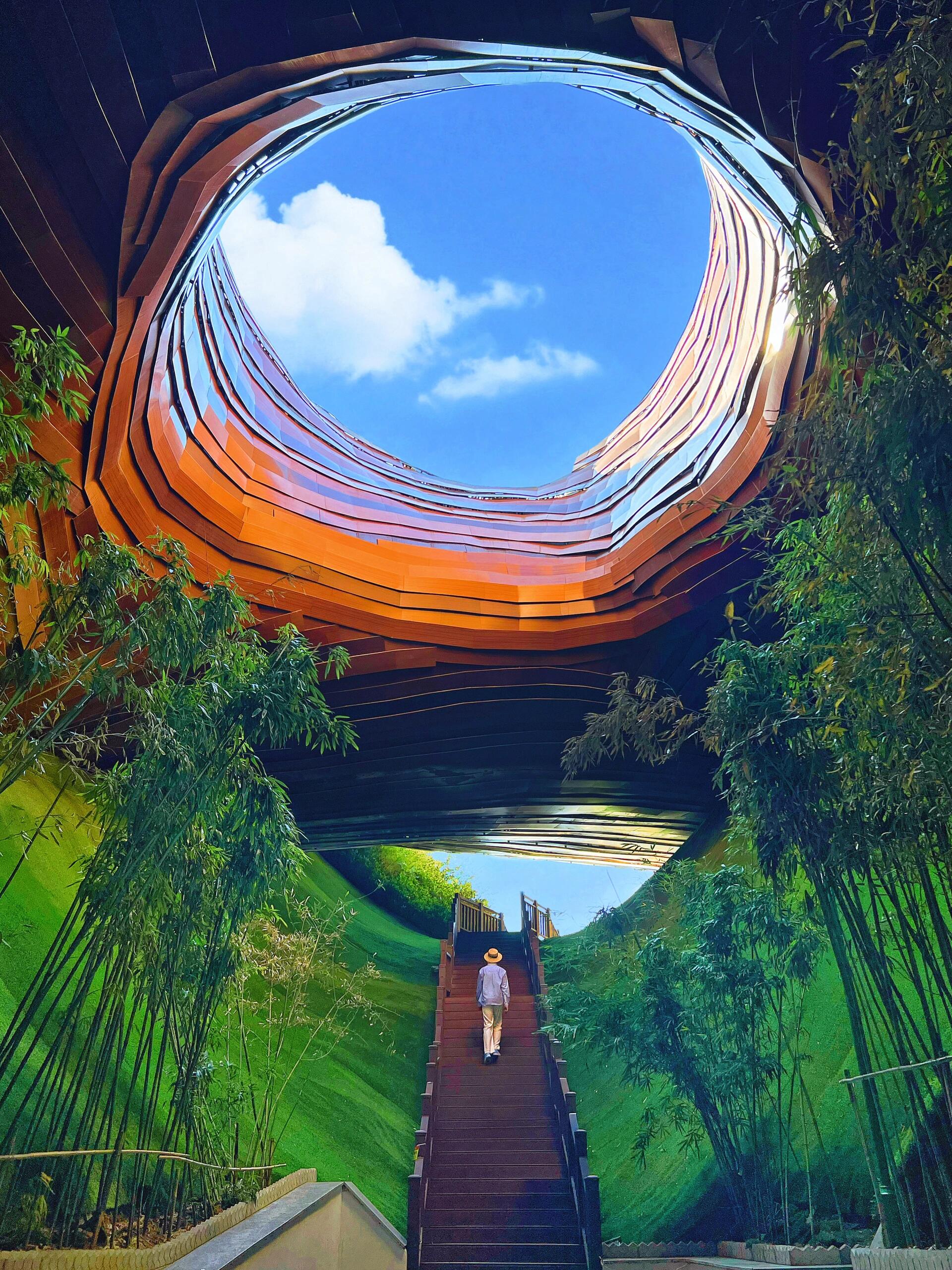 坐上小火车穿梭在万亩竹海,好像穿越到宫崎骏的电影当中,整个景区非常大还可以看到大熊猫,火烈鸟等小动物