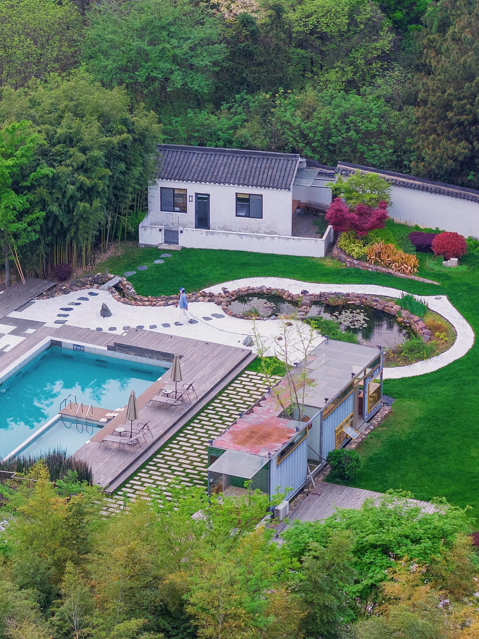 这次溧阳之行我选择了【天目湖石塘三十七号星空泳池 Villa】。大草坪、泳池、花园这间位于山间的民宿可以说是完美融合了当地自然环境,每个房间都配备了门庭小院,不要太舒服~除此之外民宿二期还有一个超大的more fun农场,白天可以和小羊小驴玩耍,亲手制作披萨,傍晚还可以观看篝火演出,体验感超棒