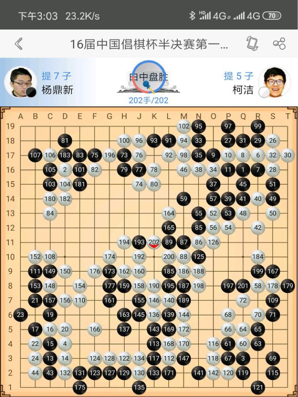 A cockroach was directly opened by Ke Jie 20 meters. Yang Dingxin admitted defeat, congratulations to Ke Jie. At the beginning Kejie seems to be in the middle of the right, did not dare to desperately, a small loss. Really wonderful!