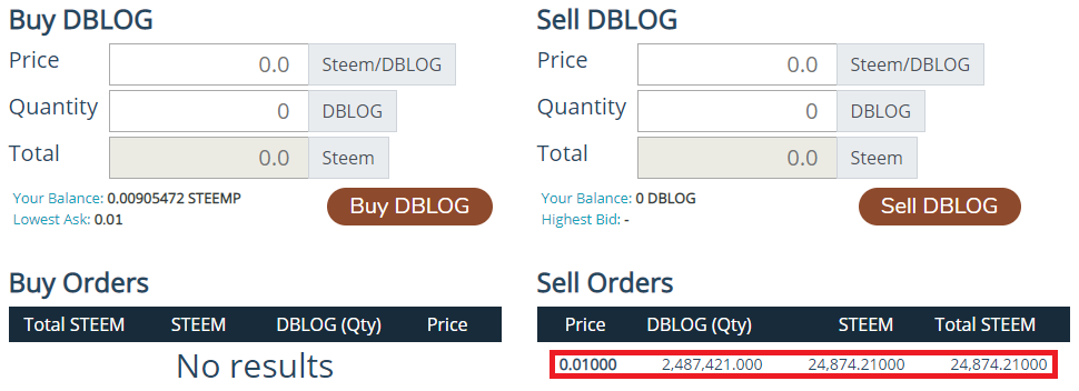 現在在SE上,可以找到DBLOG的幣,可以在裡面購買DBLOG,目前價格是「0.01 DBLOG :1 STEEM」,想要早買早享受的,不妨去買些唄!