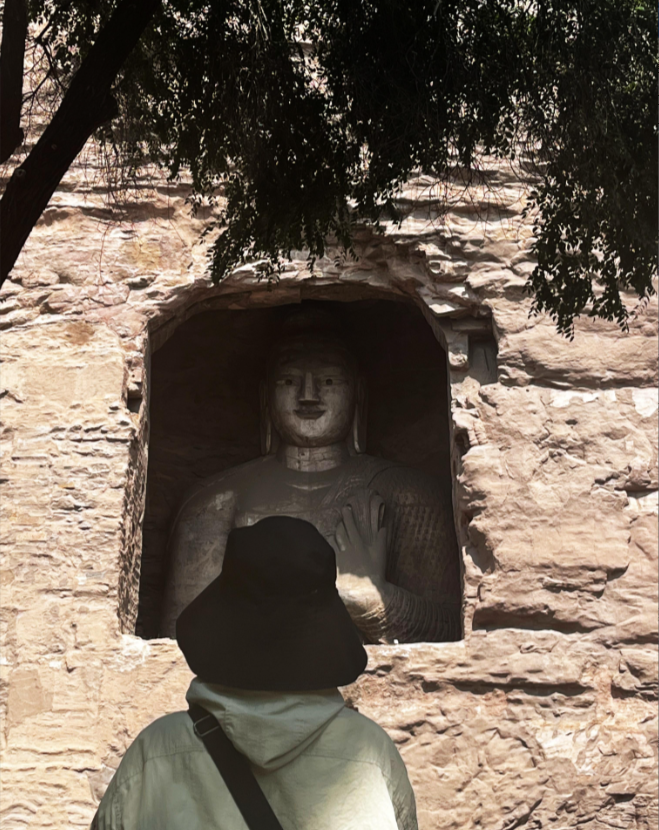 看了18窟里大佛身上的千佛袈裟,主尊佛两侧的胁侍佛,胁侍菩萨和弟子们;再比如17窟里为何是交脚弥勒菩萨而不是交脚弥勒佛,为何整体造像较之其他几尊,低于地面一米左右?也看了16窟里的身着汉装元素的大佛,以及纪录片里提到的难得一见的具有艺术美感的佛手。