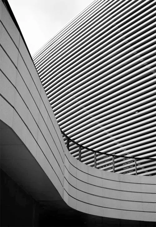 成都市东安湖体育公园百叶幕墙,墙面的线条让建筑具有流动性。