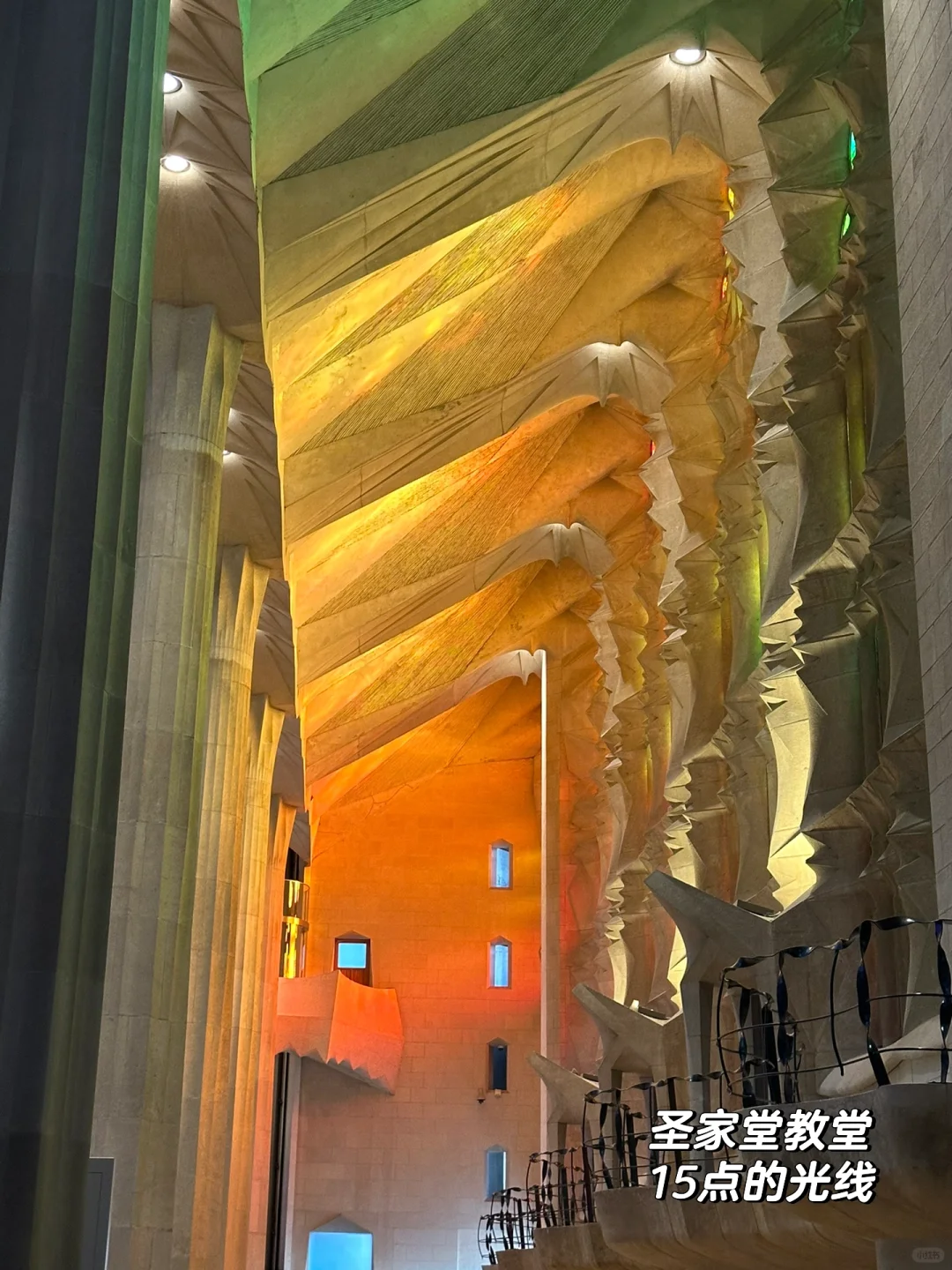 🔺15:00:圣家堂教堂p6-7 🎫某宝175元登顶(重点‼️最好下午3点到,光线非常美!整个教堂内部非常震撼!扫码还有中文详细解说,沉浸式体验❤️top 1)登顶诞生面是电梯上,走非常窄的楼梯下,可以看到城市全景,恐高人士注意,真挺高的