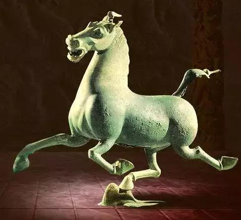 这件古代青铜作品,作于公元220年前后,高34.5厘米,长41厘米。这件两千年前制作的铜奔马造型生动,铸造精美,比例准确,四肢动势符合马的动作习性,为中外的许多考古学家和艺术家叹为观止。