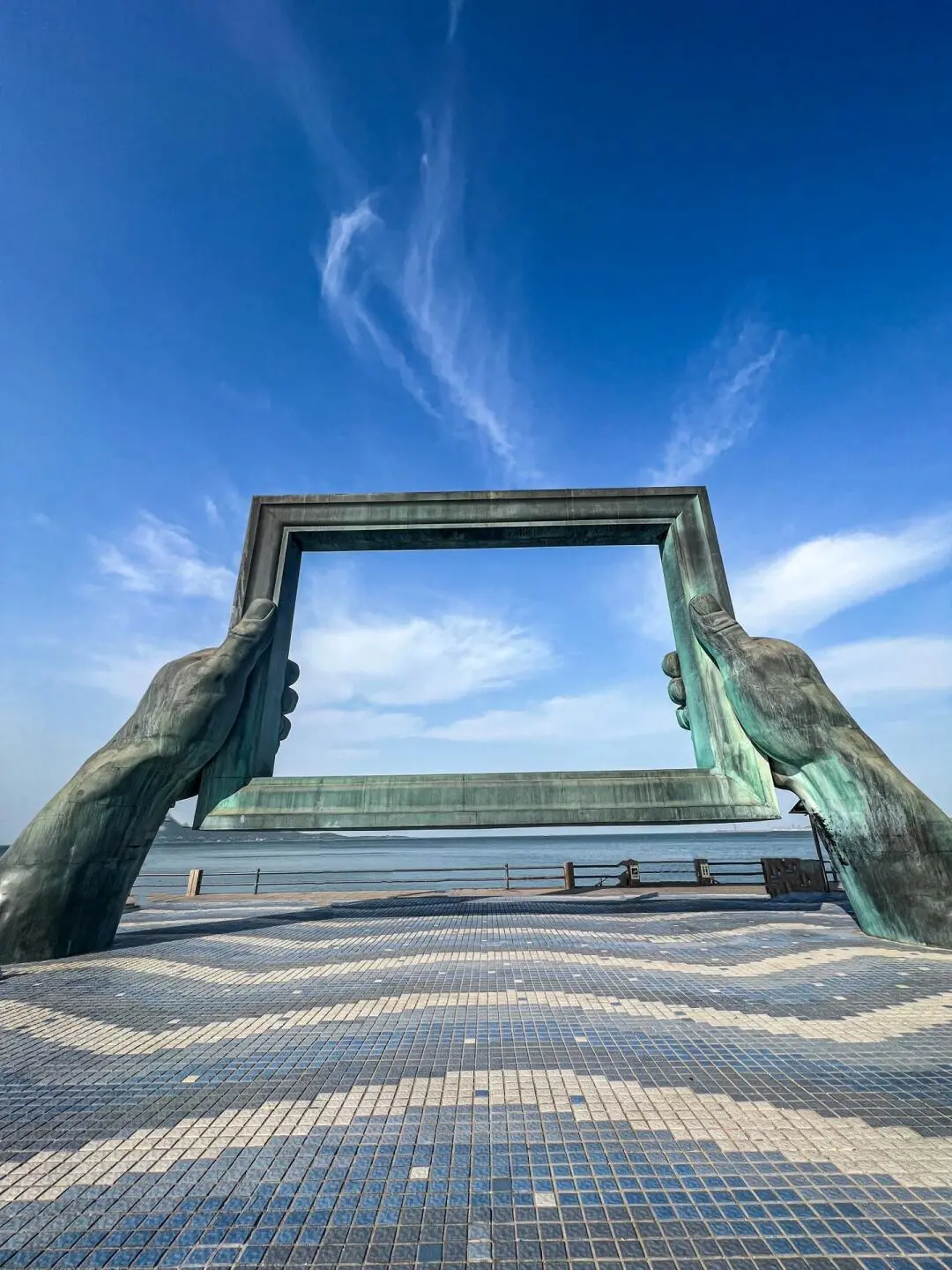 这里有威海地标性建筑一大相框🖼,人在相框里,背后是蓝色的大海。