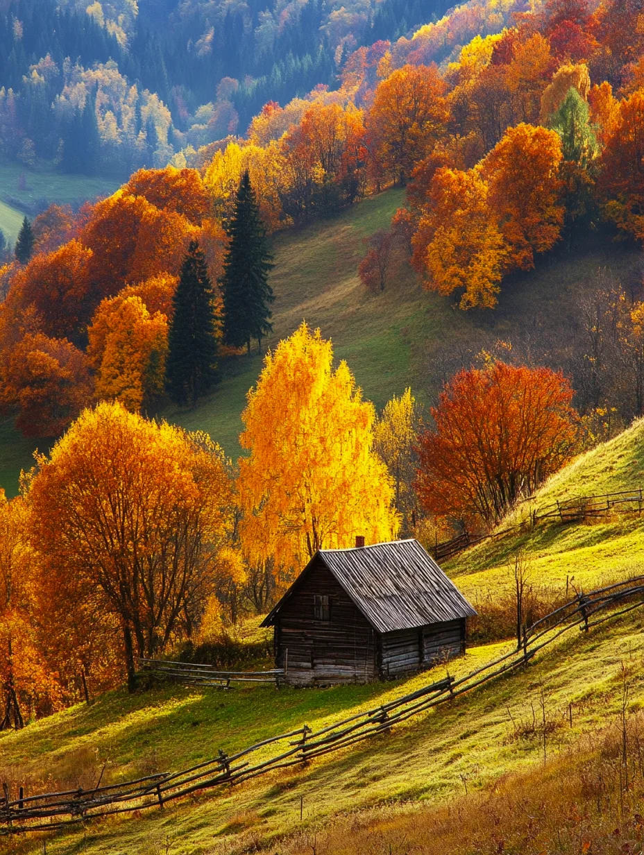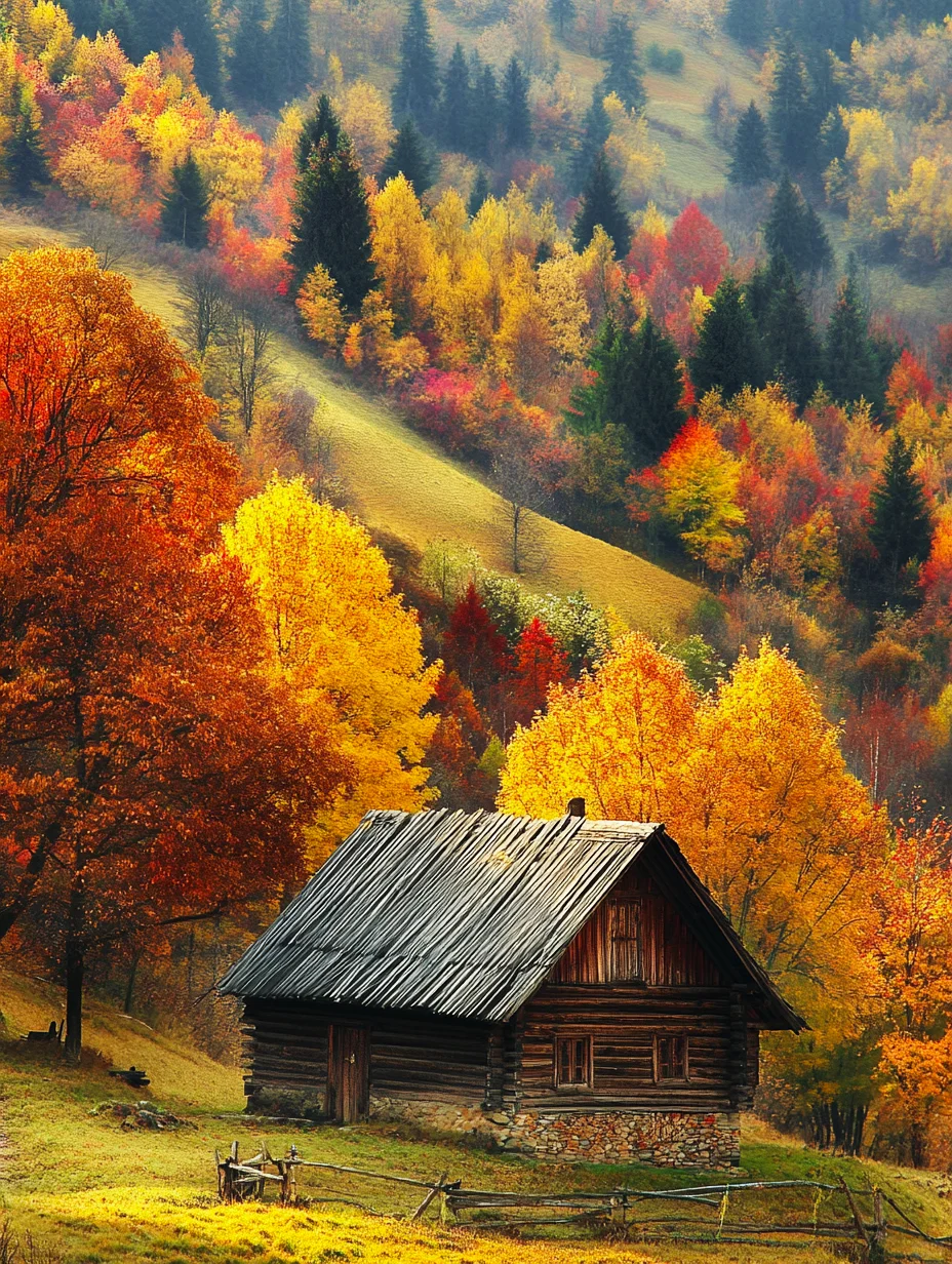 秋天的童话pinkchow (27)in #cn • 2 years ago 一栋木屋静静地伫立在金黄的秋色中,阳光洒在屋顶,泛起温暖的光晕。 远处的山峦层林尽染,如同一幅油画般绚丽多彩。 在这宁静的山野间,似乎能听到风吹过树梢的沙沙声,以及小溪潺潺的流水声。 木屋掩映在色彩斑斓的树林中,仿佛世外桃源。 推开木门,或许能看到壁炉里跳跃的火焰,闻到木头的清香。 在这里,时间仿佛静止,可以尽情享受大自然的馈赠。