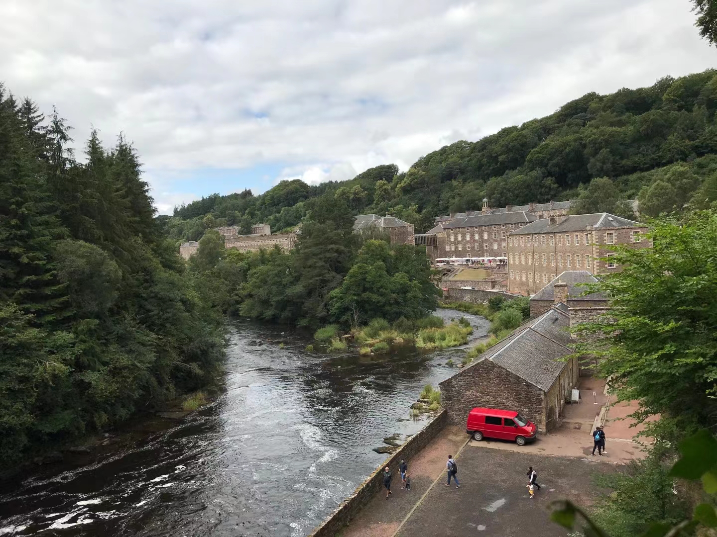 新拉纳克村只是距离爱丁堡不到100公里群山环绕的苏格兰小村庄,现在常驻人口也不到200,如同一个世外桃源般静谧,但谁能想像到二百年前正是这儿的乌托邦社会试验影响人类社会制度以及无数人的命运。这个小村庄,看起来没有我小时候的静宁新店大,当年却是很多来自爱丁堡以及格拉斯哥周边底层穷苦纺织工人和他们家庭的天堂,规模达到3000多人。现在这里被联合国教科文组织列为世界文化遗产,是苏格兰仅有的六个文化遗产之一.