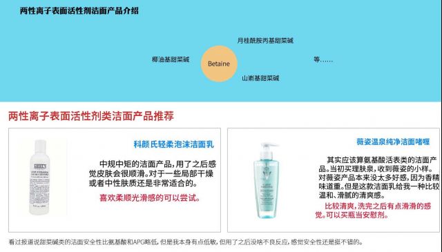两性离子表活性剂的有点是刺激性小,成泡沫性好。部分人不适应此类产品,因为粘稠感比较强,有种洗不干净的感觉。