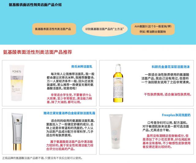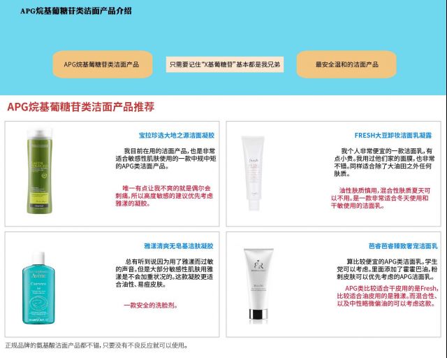 洁面产品的介绍到这就差不多了,希望大家优先选用APG和氨基酸类洁面产品。温和清洁非常重要,不要总想妄图靠一支洗面奶改头换面。此外,我个人的经验告诉男生们,尽量避免使用男士专用产品,直男也要少走弯路啊!我推荐的产品都是不同品牌的,我不为任何品牌站台推广。我不是微商,不卖任何产品。无关利益的分享更接近真实,祝大家尽早改头换面吧哈哈哈!