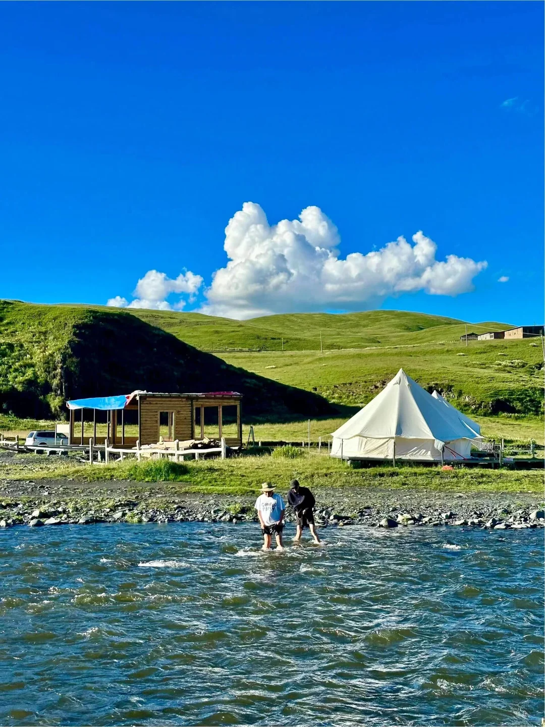 🌟3.姑弄村这附近随处可见的草坪,随便找一处有溪流的地方扎营,在这里拍照也非常出片