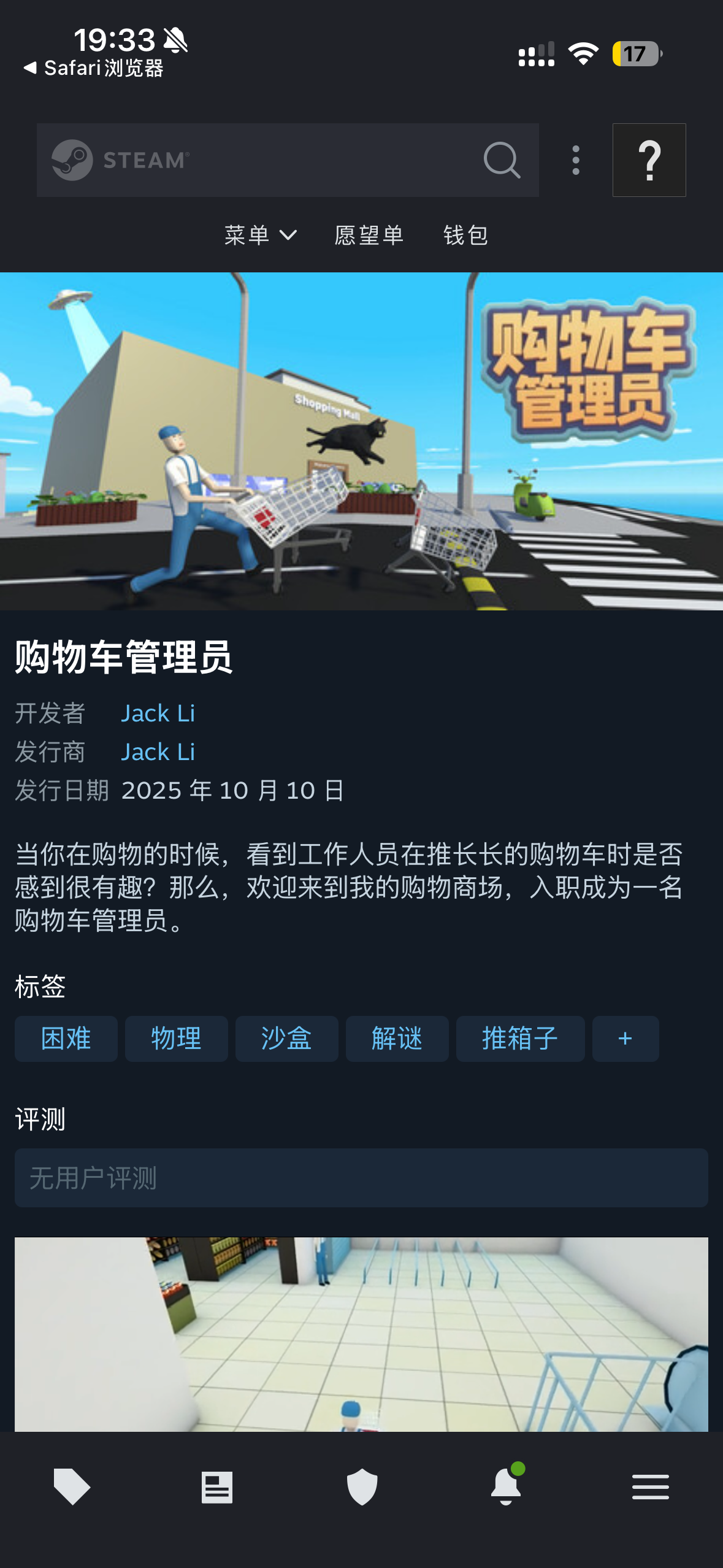 个人开发的游戏《购物车管理员》首发Steam
