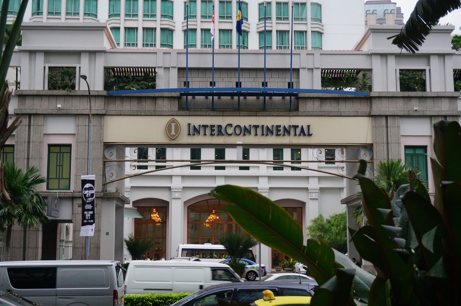 InterContinental Singapore位於市中心Bugis區,酒店旁正是地鐵Bugis站上蓋的購物中心Bugis Junction,因此不用日曬雨淋就能到達地鐵站,非常方便。不過由於Bugis屬於中心地段,亦是大型購物區,所以假日交通非常擠塞,平日交通還好一點,上圖是星期日酒店正門對出的街道,和香港中環有得比。