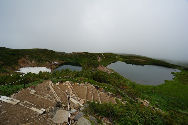 上到一個小山丘就會見到摺鉢池和鏡池並排在一起,兩者合稱為夫婦池
