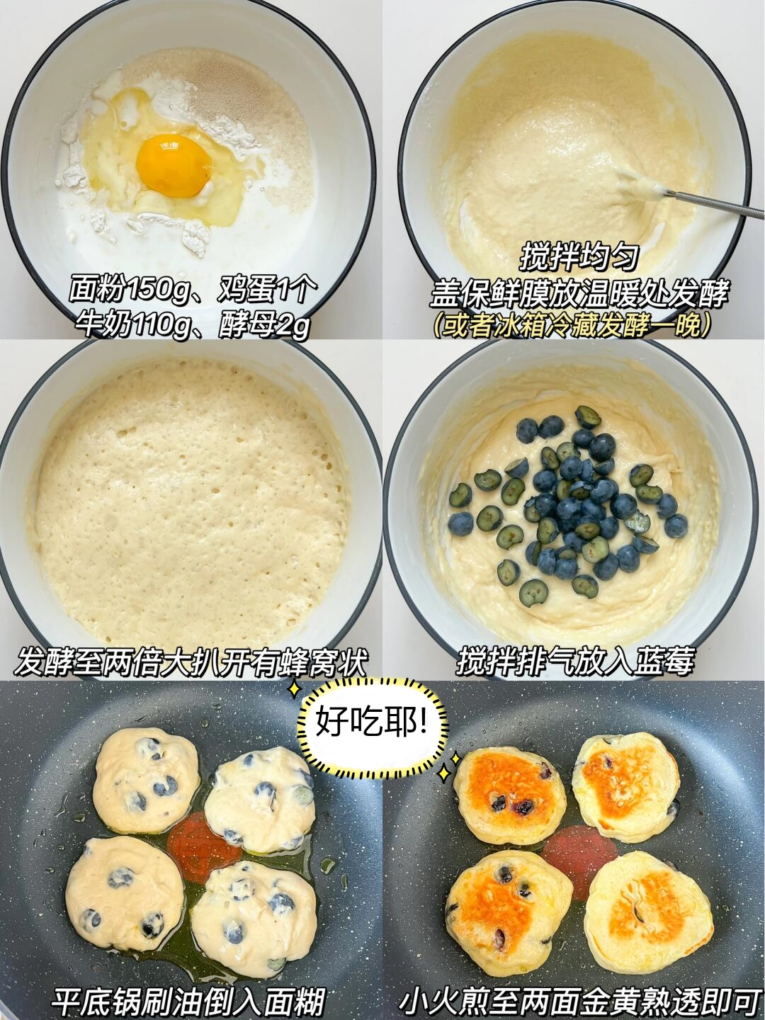 奶香爆浆饼songen (27)in #cn • 2 years ago 宝宝需要养脾胃,赶紧来试试这个奶香蓝莓发面饼! 蓬松暄软,搭配酸甜的蓝莓,一口下去还能爆浆,真的太满足了,女儿特别喜欢吃! 做法简单快手,搅一搅就能做,太方便了,每天需要早起给宝宝做早餐的朋友们,赶紧安排起来! 🛒食材: 🌟面粉150g 🌟牛奶110g 🌟鸡蛋1个 🌟蓝莓适量 👩🏻🍳具体做法请看图文教程! ✅喜欢吃甜的朋友可以加少许糖