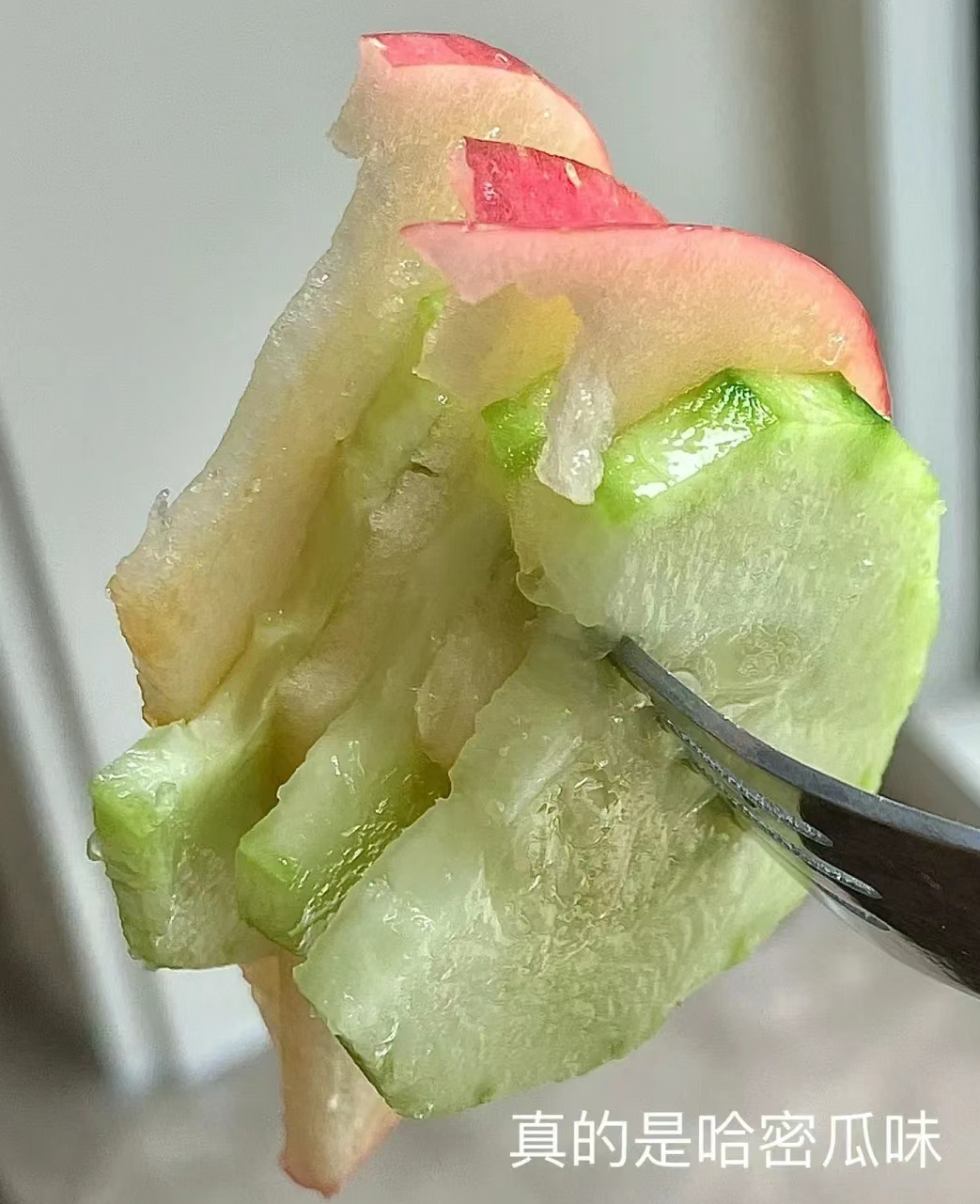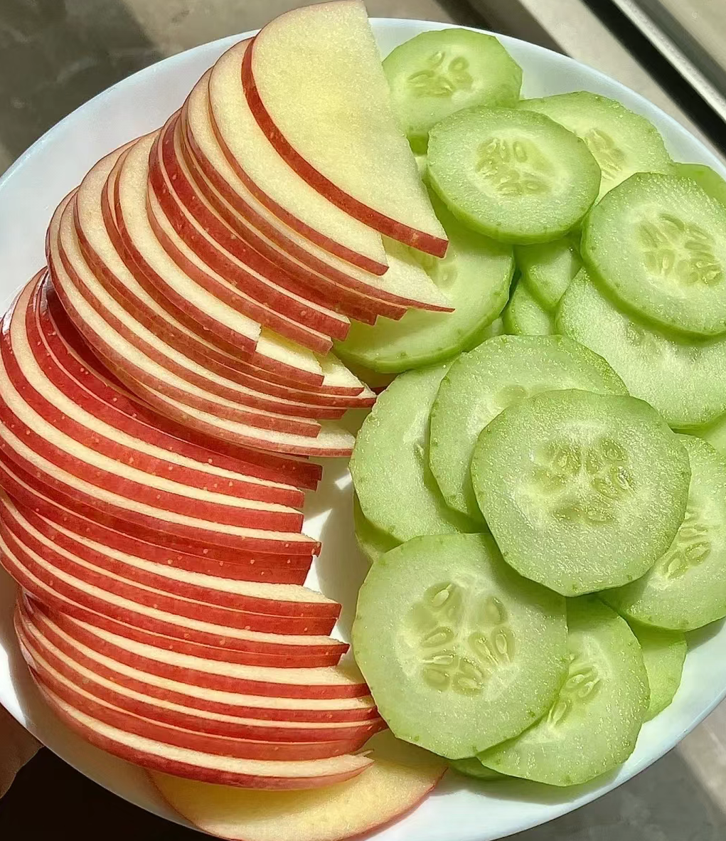 苹果+黄瓜=哈密瓜 直接给一盘子干没了…… 这个吃法很很清爽! 确实隐隐约约吃出了哈密瓜味