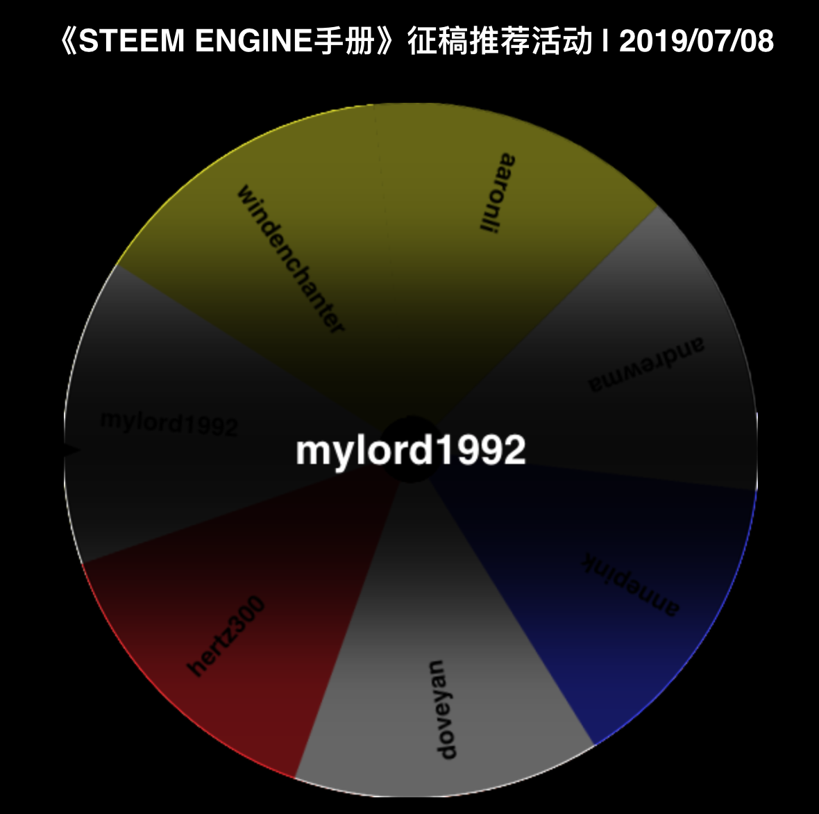 抽奖工具使用了老K @kelvinzhang 推荐的 wheeldecide,以抽奖程序在我的浏览器中的第一次运行结果为准。