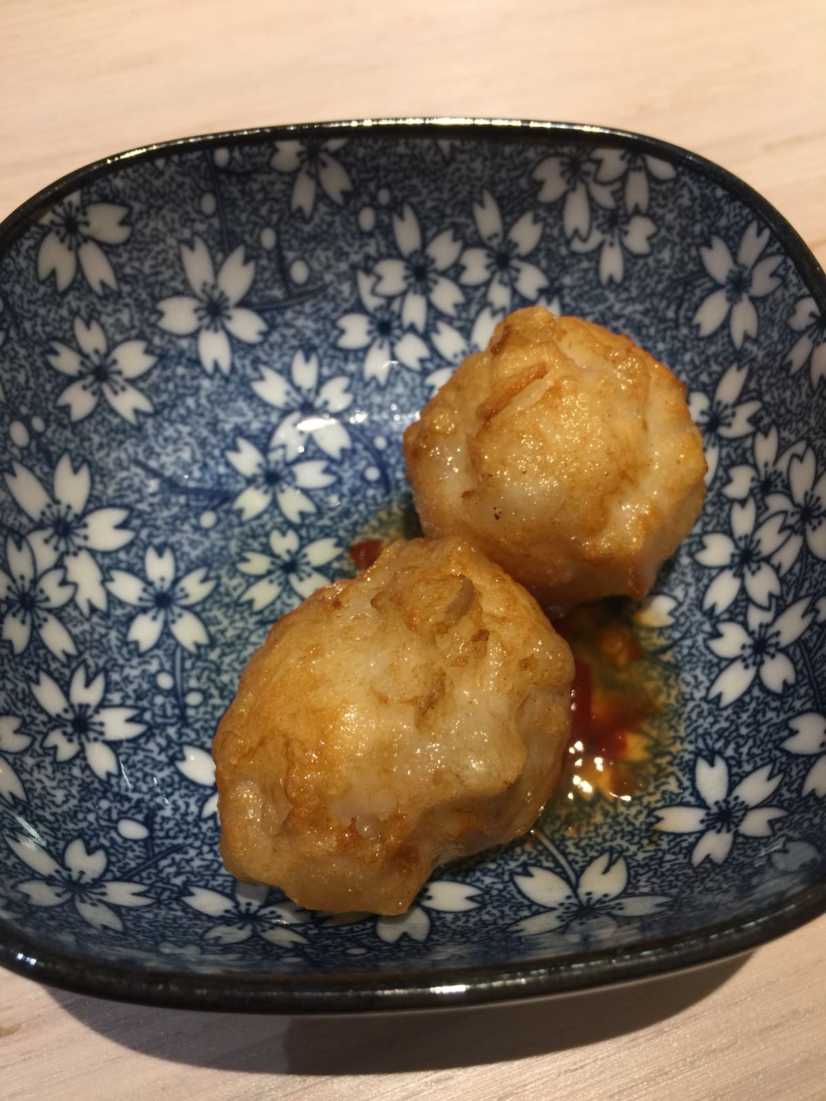 花枝墨魚丸配甜酸醬,帶有非常輕微嘅辣味,很開胃。