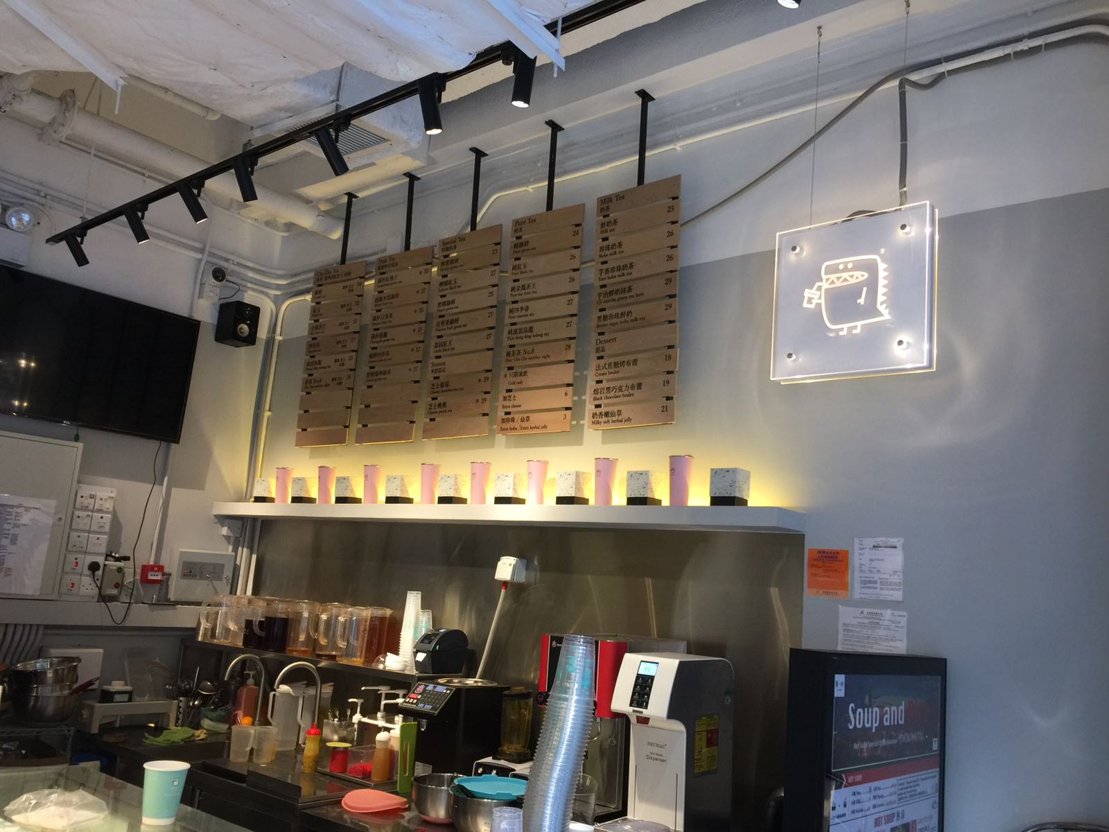 入到店內,覺得佢都幾似台灣啲小店,而飲品方面,都係近排好Hit嘅芝士奶蓋類同水果茶。環境乾淨、簡約,仲播住女朋友好鐘意嘅周董歌!