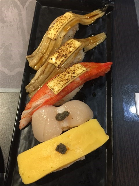 壽司就叫咗啲芝士火脊壽司, 我就好鐘意燒咗嘅芝士味夾埋鰻魚同長腳蟹嘅味啦!