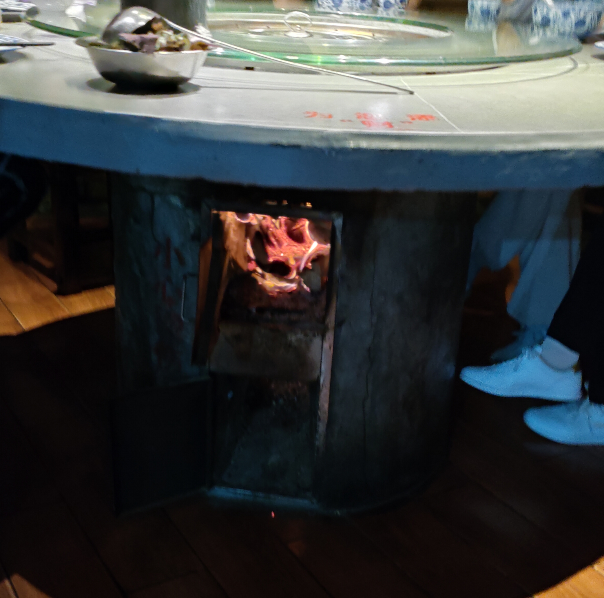 今天早一点记录吃饭的情况,21日练拳后,我们到黄埔区珠吉路的贺庄柴灶鱼(也叫贺庄活鱼馆)吃饭。这里的特点是真的用柴火煮鱼,一开始我不知道,因为根本看不到烟和火。他们一说,我才发现,桌子下面是柴火,打开柴火门可以看到熊熊的火,烟,应该是有烟道引开了,所以不影响顾客吃饭。