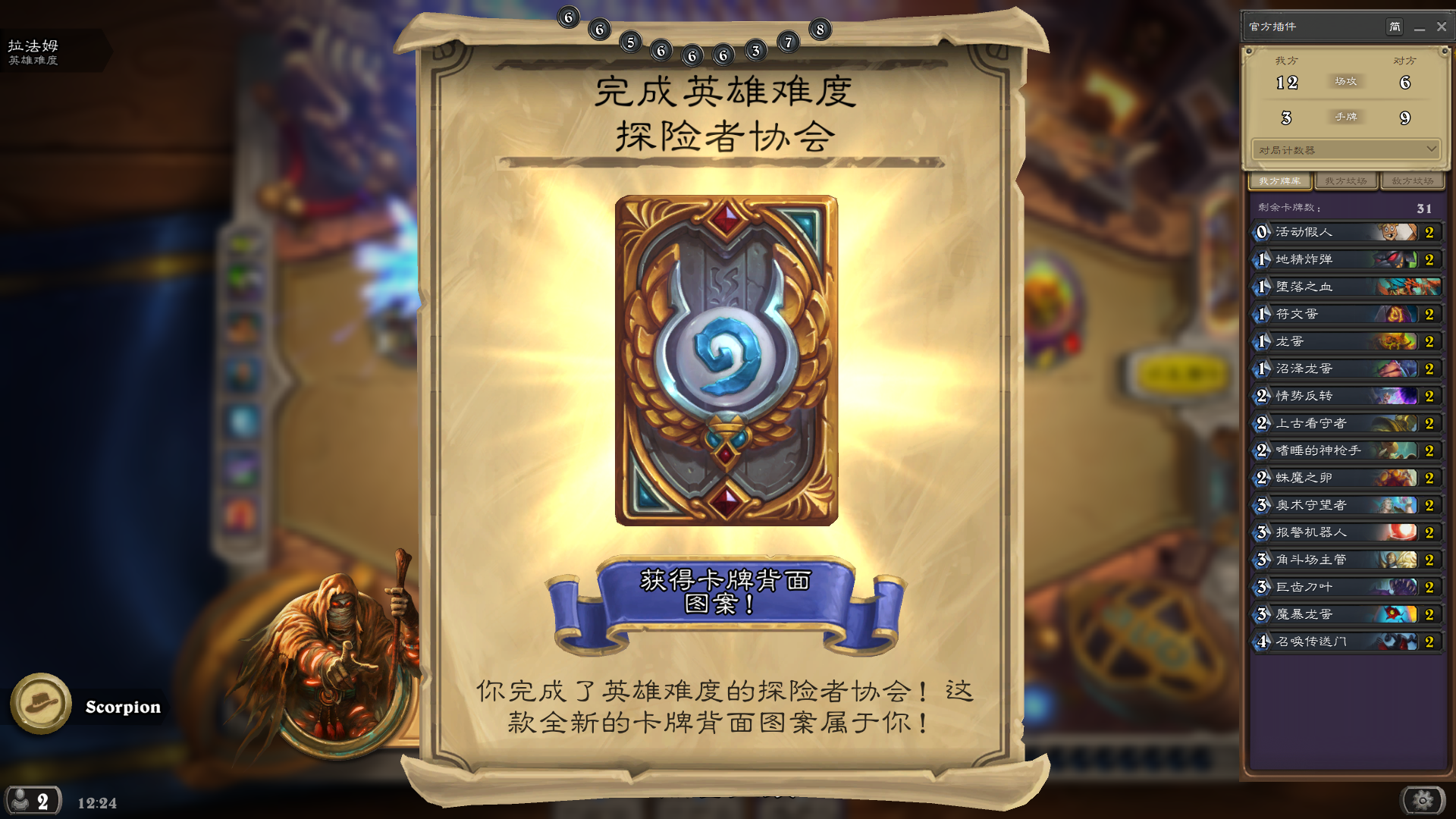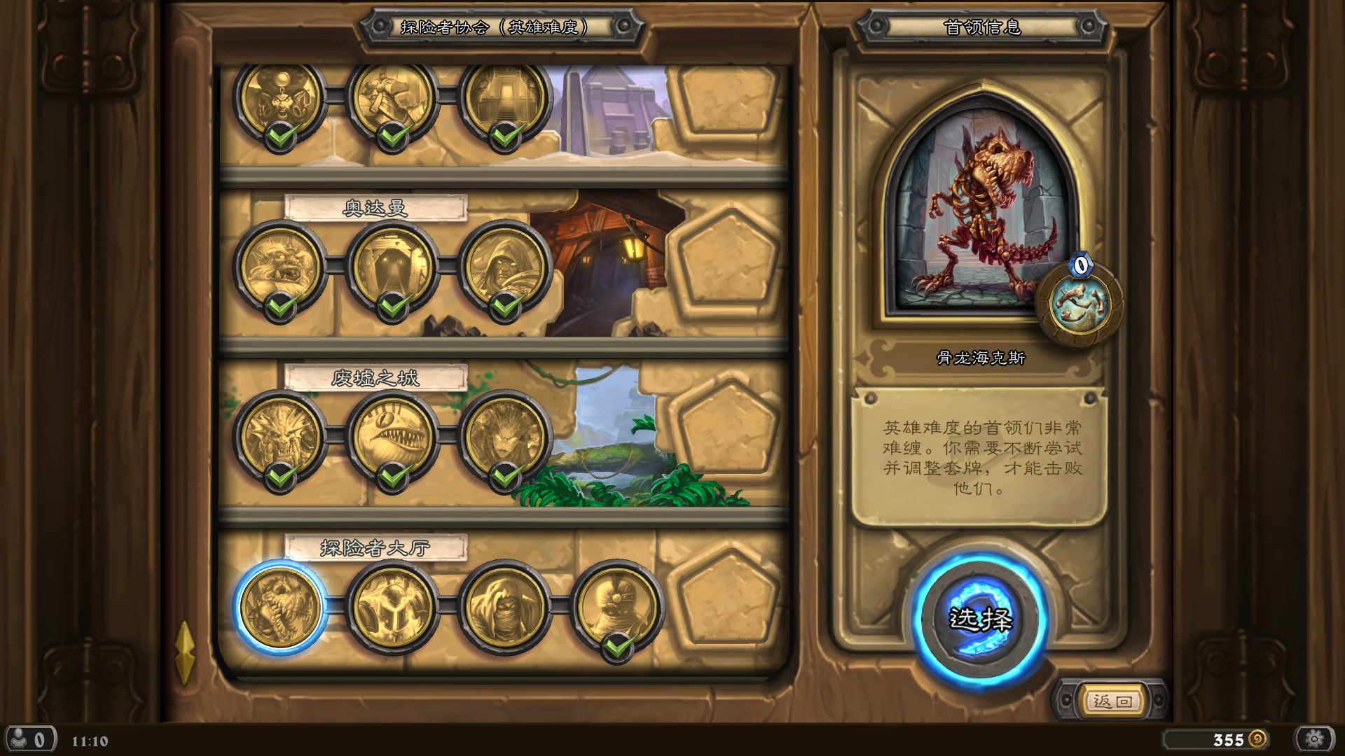 中午打开炉石,想起之前的冒险模式还有几个版本的英雄难度没有通关。看了一下,今天就从探险者协会开始吧!