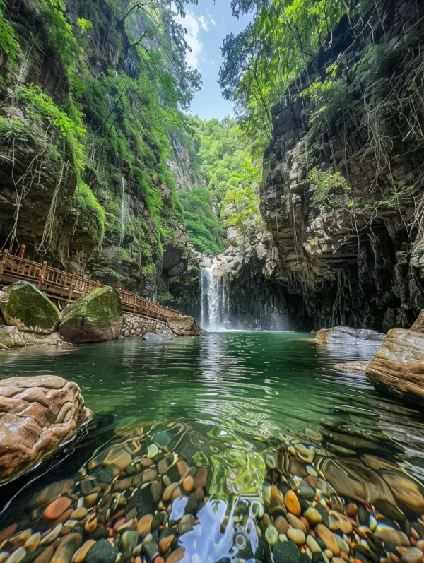山里面的空气特别清新,就像一座天然氧吧。水非常清凉,而且很是清澈,走在树荫遍地的路上,连远处的鸟鸣都变得悦耳动听。这才是独属于夏天的清凉和惬意,在这里游玩,真有一种人在画中游的感觉。