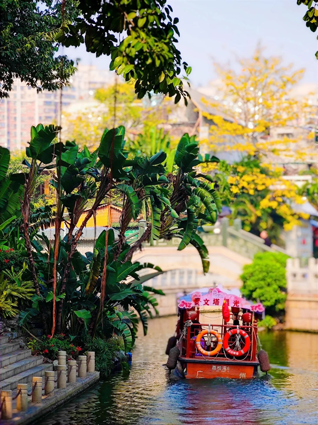 走出阳台可以望见宽阔的荔湾湖上游船如织