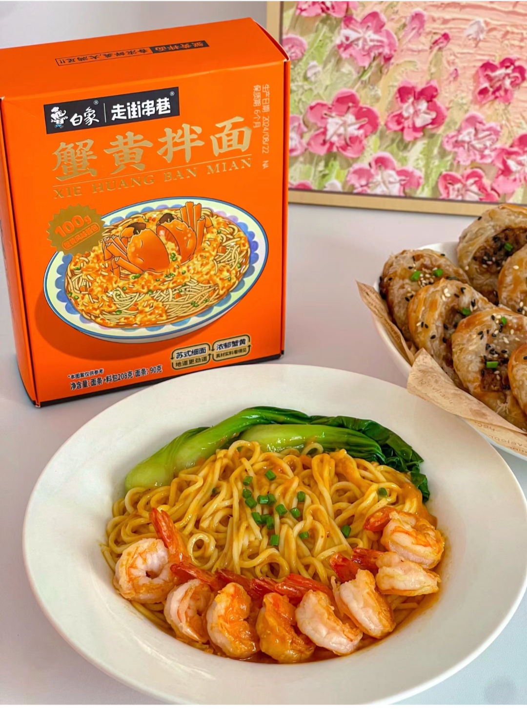 大小朋友爱吃的中式早餐,蟹黄拌面+鲜肉锅盔steemCreated with Sketch.tangya (32)in #cn • 2 years ago 早餐做了鲜香美味的蟹黄拌面,搭配酥酥脆脆的鲜肉锅盔真的太好吃啦!做法简单,赶紧去安排起来吧~ 准备食材: 鲜肉锅盔:肉末、葱花、手抓饼。 蟹黄拌面:虾仁、青菜、白象蟹黄拌面。 具体详细做法看图文哦。 今天早餐做的蟹黄拌面是白象家的,他们家的蟹黄酱包足足有100g,酱比面还多!打开包装就能看到金黄的蟹肉,鲜香四溢,每根面条都裹上了浓郁的蟹黄,吃起来真的超级过瘾,好吃到舔盘!足不出户在家几分钟就能吃到地道苏式蟹黄拌面!简直不要太方便呀,5分钟就能搞定,妥妥的懒人福音,兄弟姐妹们都快去试试~