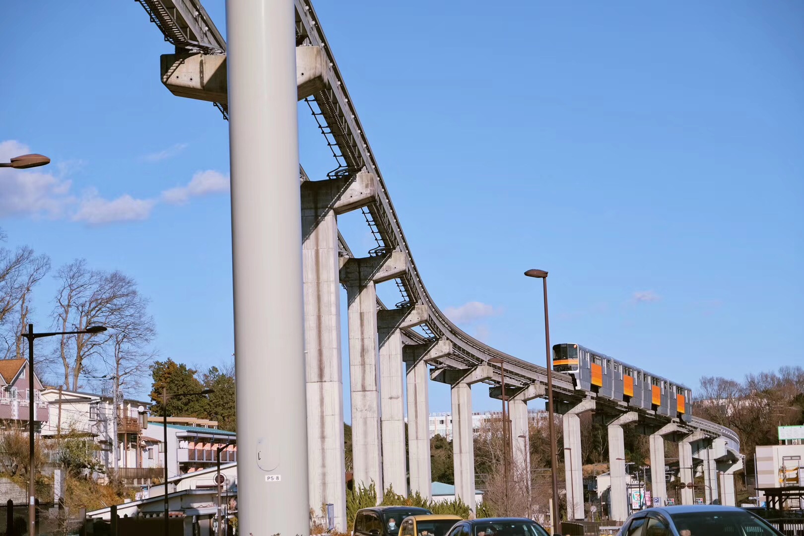 以蓝天做背景的多摩都市单轨