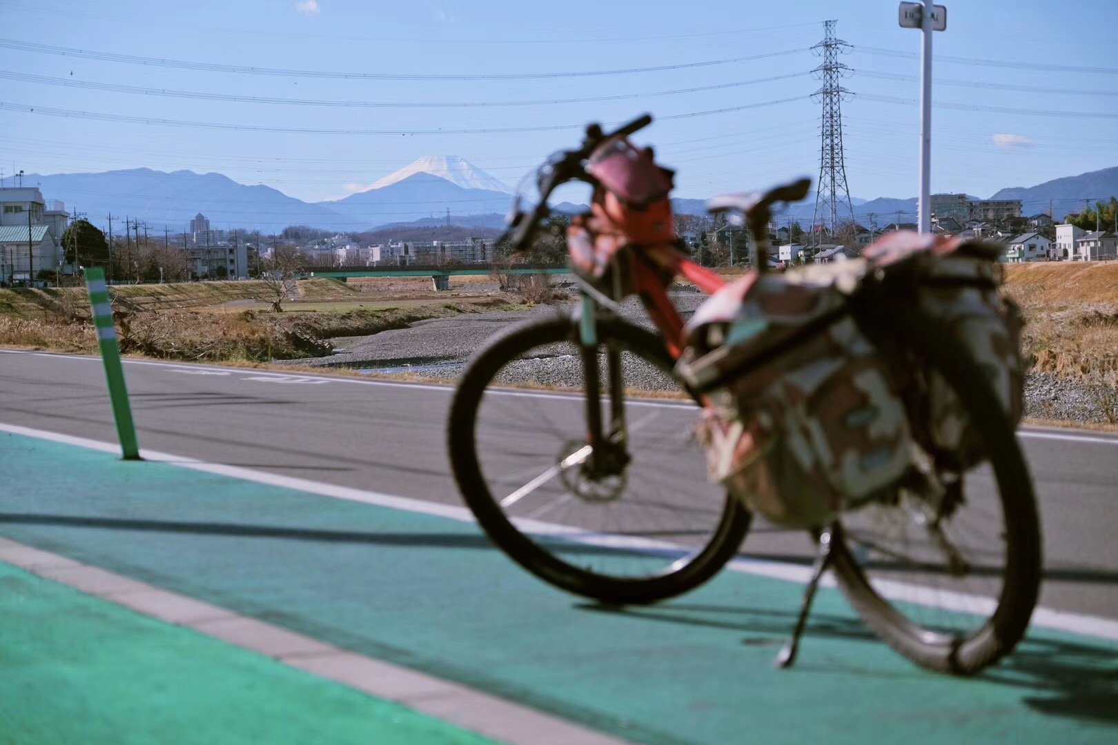 如果选择在日本的下町(したまち Shitamachi,古代城市中庶民聚居的城区,现指普通老百姓住宅区,与高档商业区域相对)打发时间观光的话,开车根本无法接触到丝毫人文气息,但是走路又太慢,所以自行车绝对是最好的选择。(图中远处是富士山)