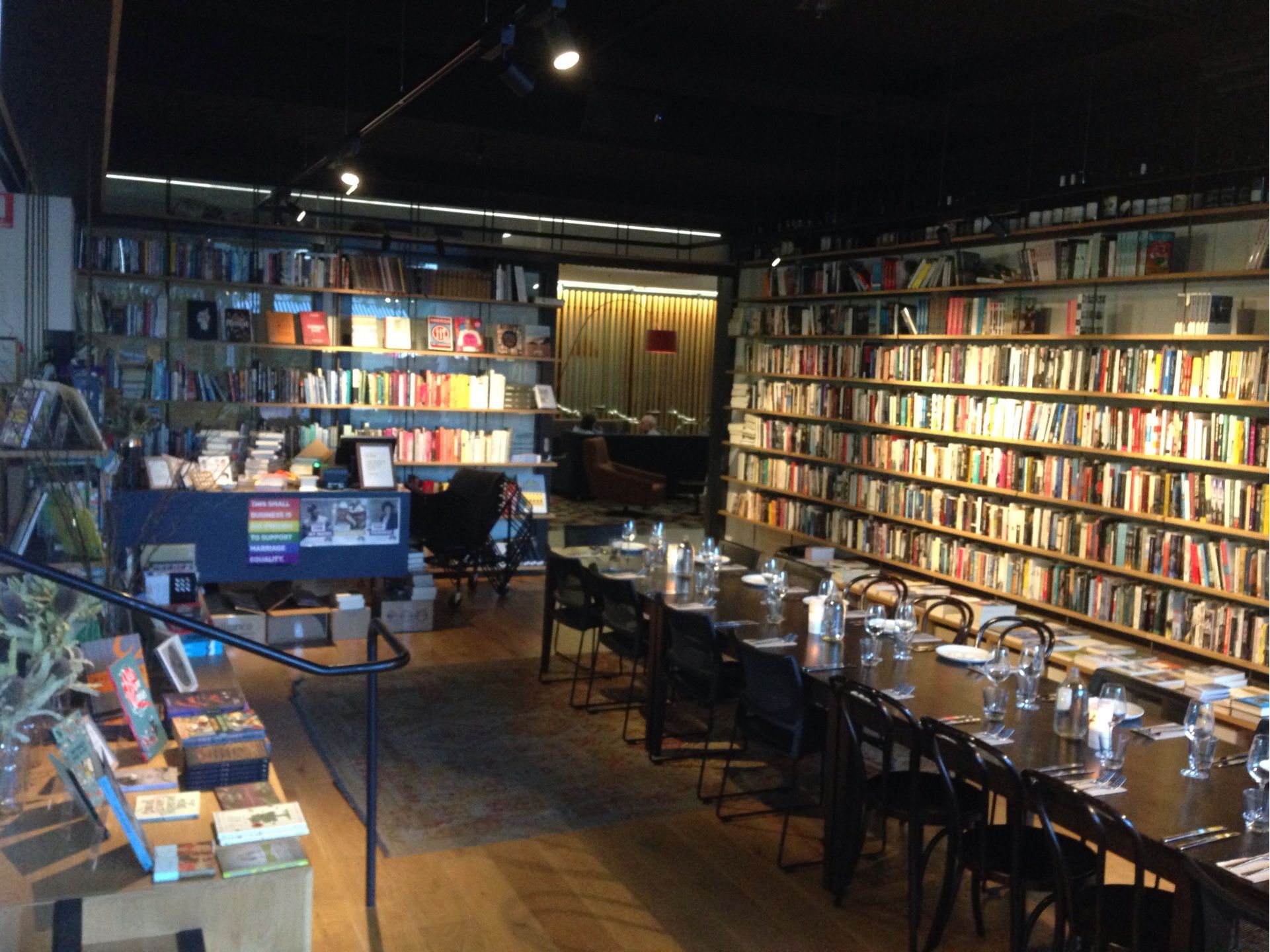 這家餐廳除了供餐之外,也附設酒吧,並兼營書店,是來坎京出差的商務客及附近的上班族的最愛,既可看書買書,又可小酌品餐,同時補充精神和肉體的糧食。不少作者也常借用場地舉辦新書發表或與讀友聚餐交流。