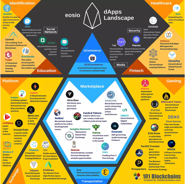 EOS于今年6月份主网上线,并且自带光环,很多团队纷纷表明要在EOS上开发分布式应用。比如EOXCommerce,在EOA上建立电子商务平台,使货物和服务可以在EOS或其他加密技术的帮助下进行交易或交换;EVA是基于区块链的城市交通平台,它被称为“可持续的乘客共享平台”,为驾驶员和乘客提供收益等等。