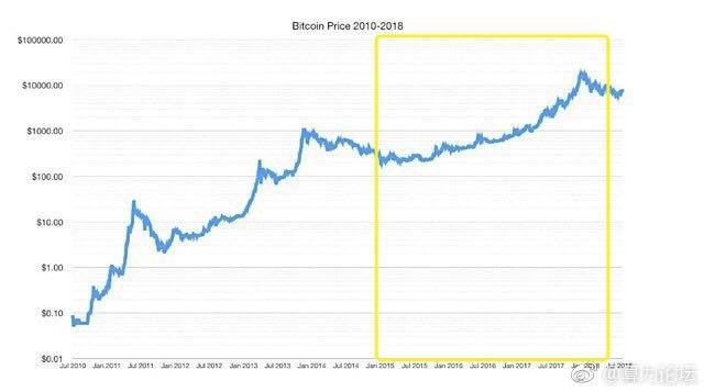 很多人没有经历过比特币第一次牛完从36跌到2,第二次260跌到50,第三次1160跌到150,不知道即使2017年从1800美元到19000美元的路上,也是和现在一样的市场存在各种乐观和悲观的情绪。只有通过消除情绪,观察趋势,才能合理的对将来可能发展的情况进行预测,那么我们开始吧。