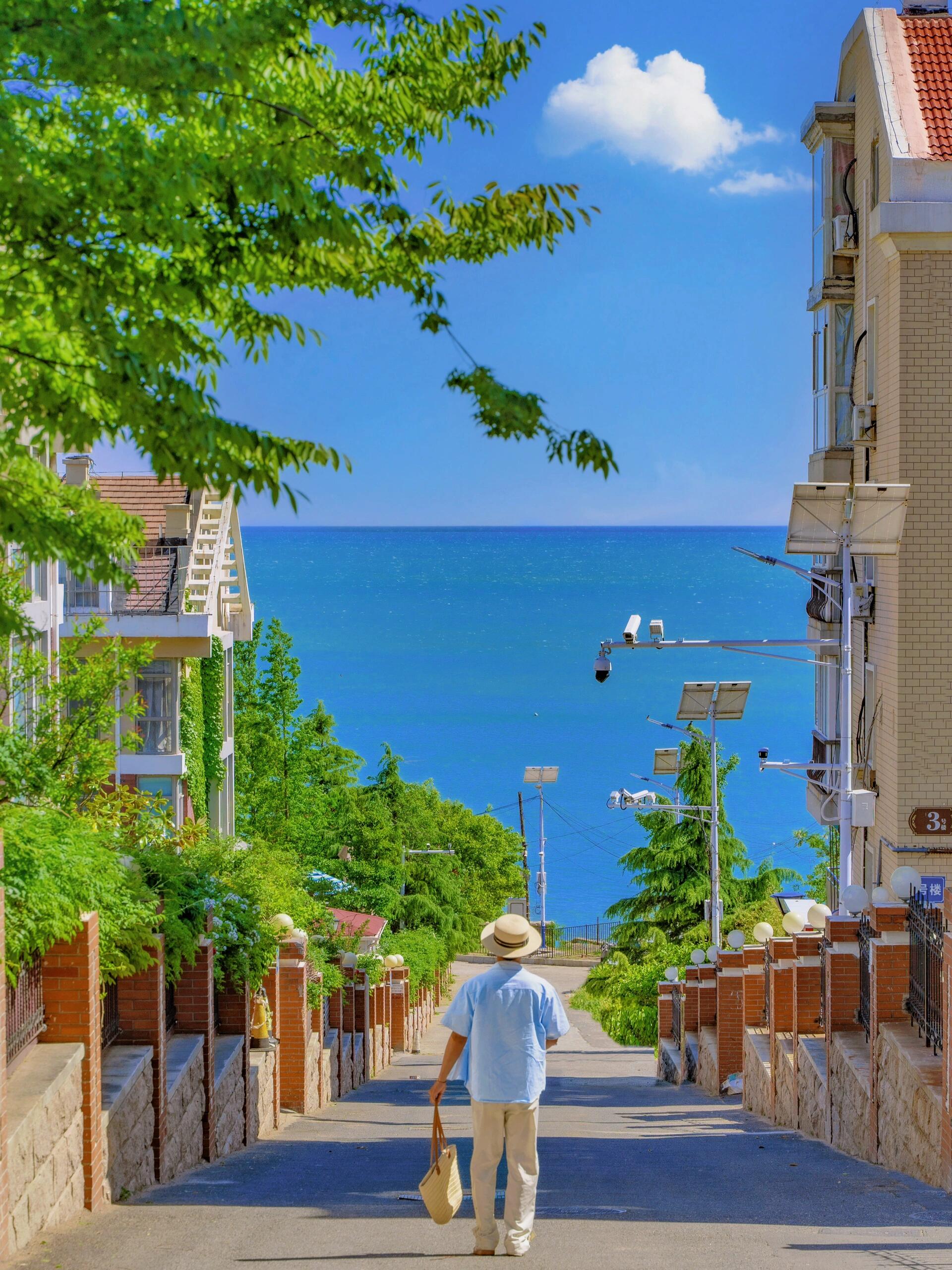 ❹📍西陵峡一路:离栈桥很近,通往大海的一条路,搭配两边的龙柏树绝美
