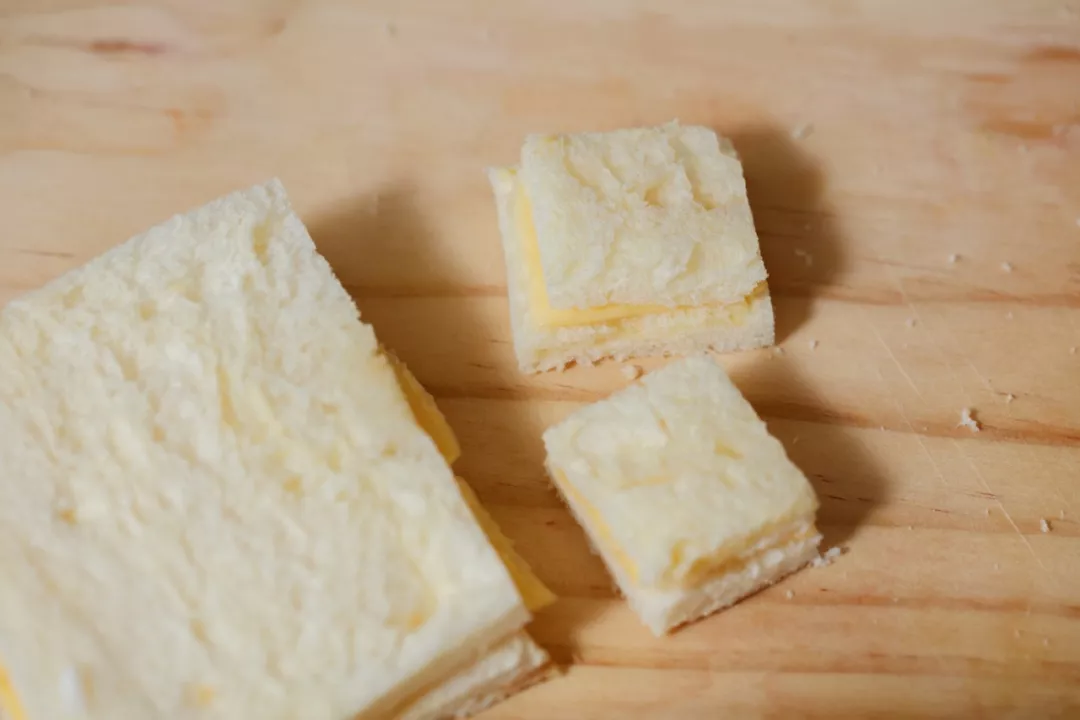早餐做三明治的話,一定要份量夠大,於是這次我們做的是三層三明治,放好午餐肉。