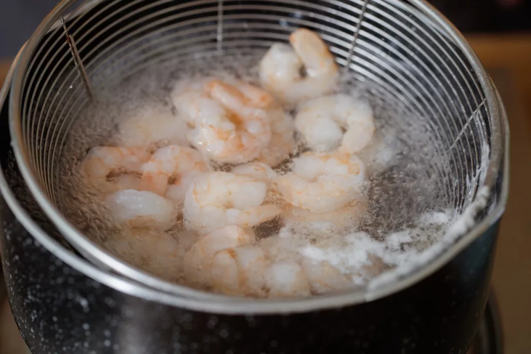 接下來就是重頭戲了,開始煮蝦仁,在煮蝦仁的鍋裏放一點油和鹽,看到蝦逐漸變紅即可,一定要確認煮熟了哦!