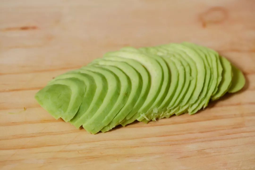 打開冰箱,裏面有一個放了快半個月終於熟透的牛油果,就它了,哢一聲就變兩半了!趁著牛油果不註意,切絲切片都隨你。