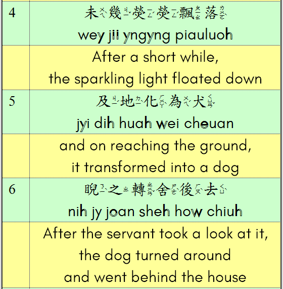 Classical Chinese is exceedingly terse. Here is the unpunctuated text of “ The Dog Lantern”: