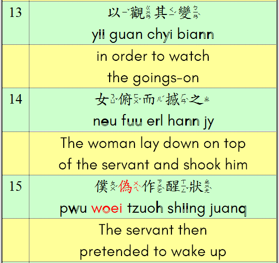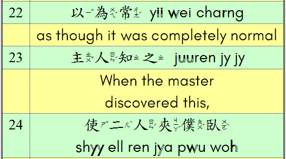 The original story only takes up a few lines (141 characters), and yet the English translation expands to a quite respectable 15 lines (251 words). Below is my own sentence-by-sentence translation of the elegant 文言文 (Classical Chinese) original, part of a projected Introduction to Classical Chinese, a course I am slowly compiling.