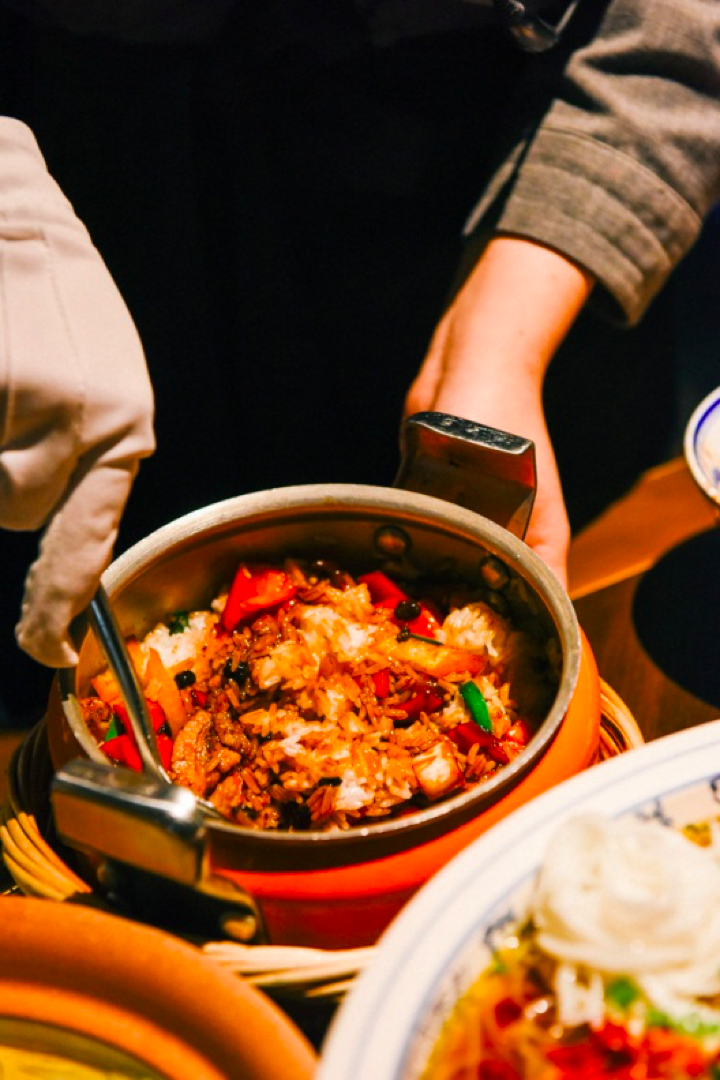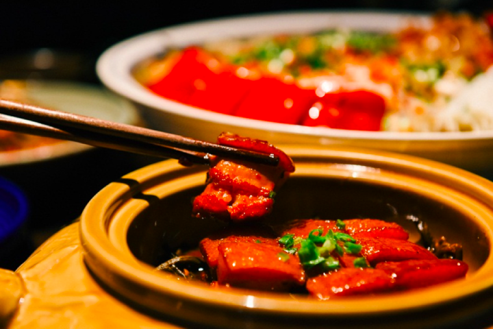用大瓦罐坛呈上来的「主席红烧肉」选用上等的黑猪五花肉,经过数小时的煲制,肉变得异常软烂,肥肉入口即化,入味十足。