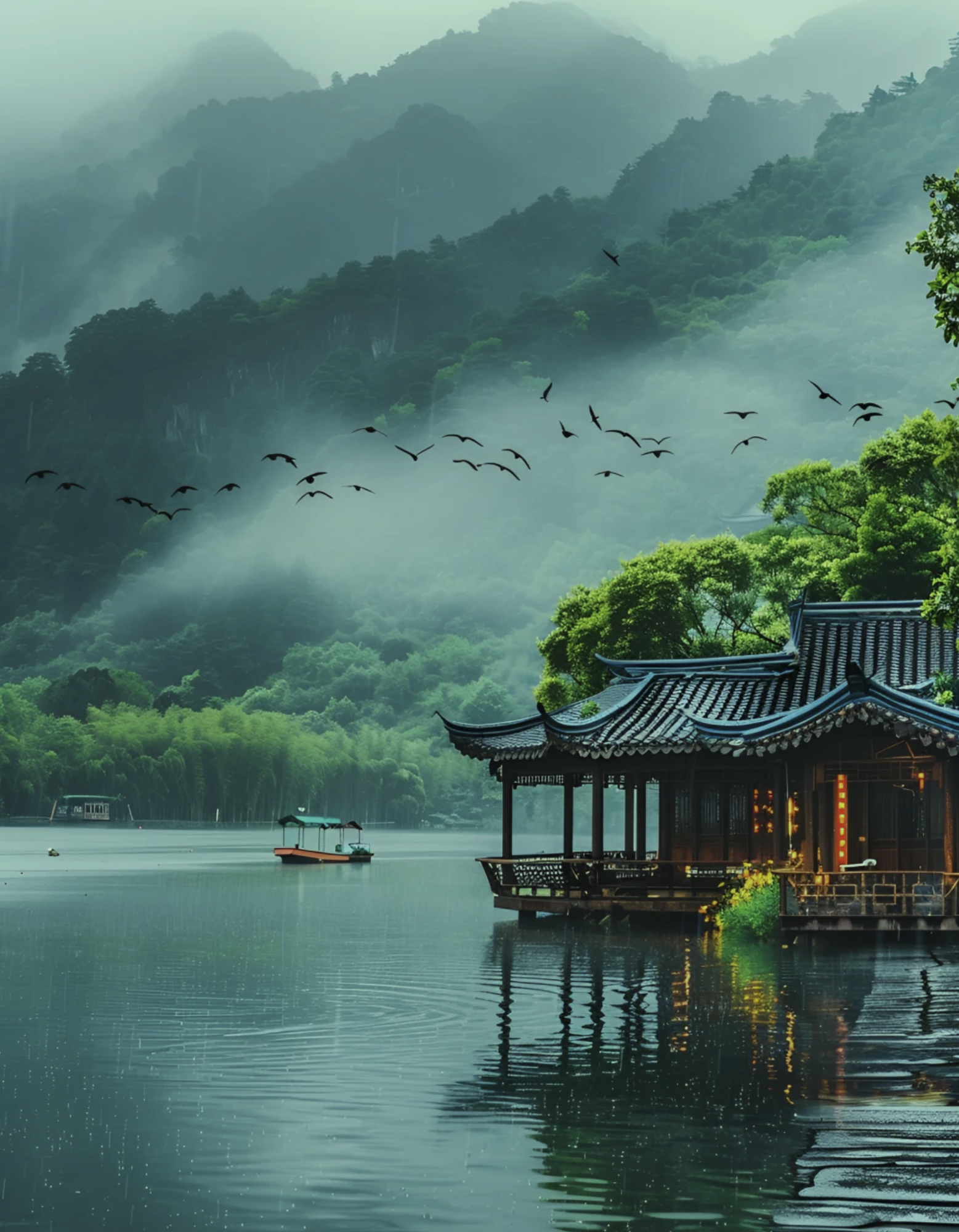 鸿雁啼鸣薄雾里,